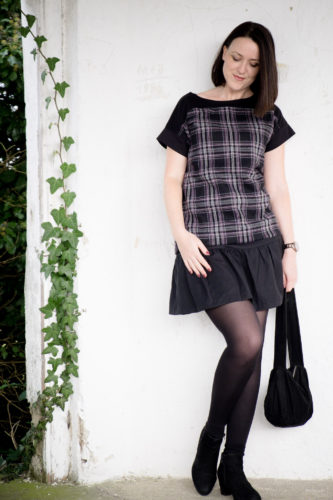 Von dem Karo-Wollstoff hatte ich über 2 Meter, sodass ich daraus neben dem Tellerrock auch noch ein Wollshirt nähen konnte.