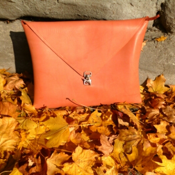 Das Leder für diese Tasche habe ich vor 2 oder 3 Jahren auf einem Mittelaltermarkt erstanden. Es hat eine besondere Farbe, die man auf den Nahaufnahmen der Tasche gut erkennen kann – ein weiches Orange mit einer Nuance Rosé.