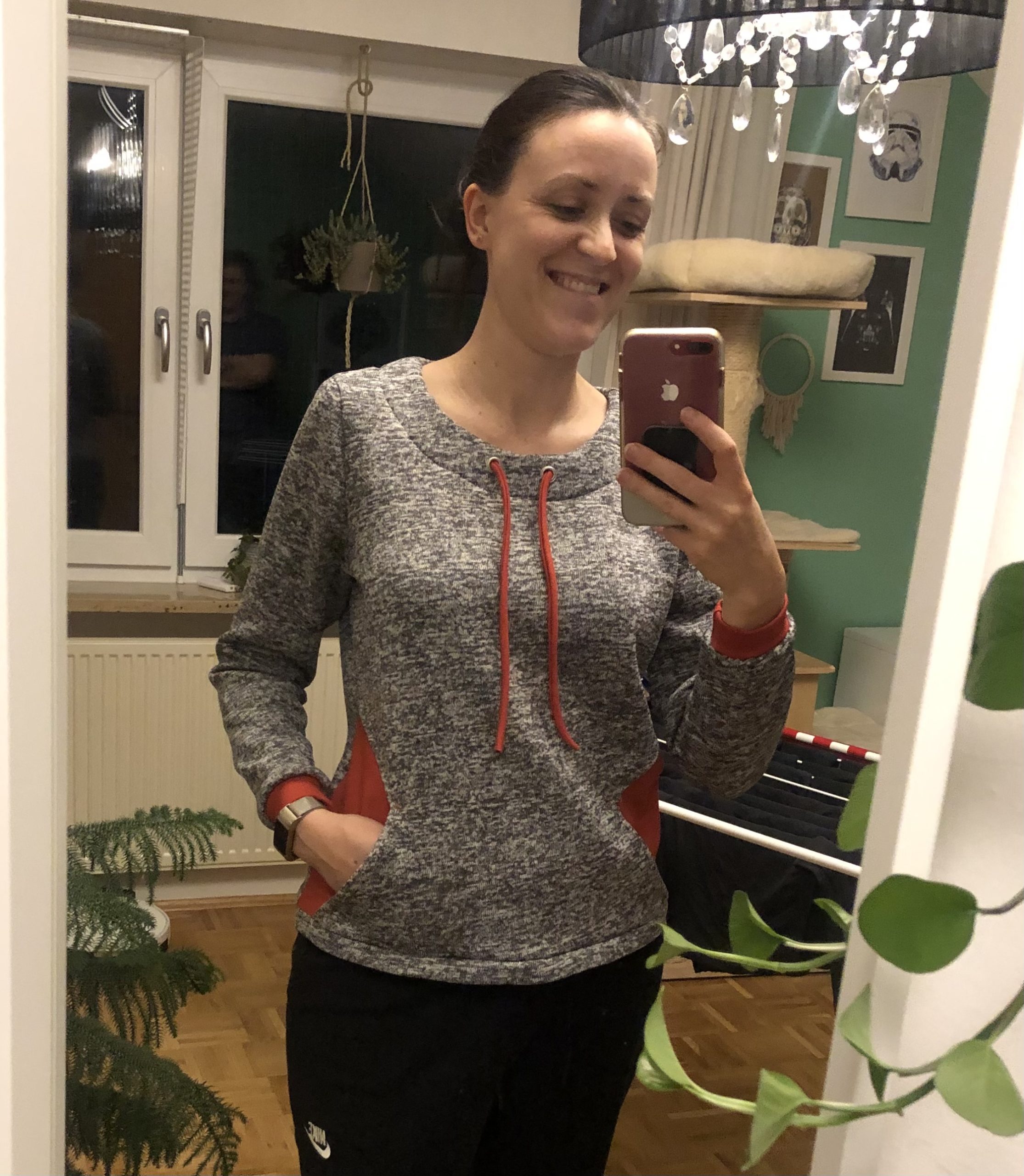 Im Homeoffice mit vielen Videotelkos brauche ich bequeme praktische Oberteile, auf denen die Katzenhaare nicht zu extrem zu sehen sind ;), und die businesstauglich sind. Für den Fall dass mal irgendwann die Pandemie vorbei ist, möchte ich aber auch nicht ausschließlich Jogginghosen und Schlapperpullover genäht haben. Ein bequemer gut sitzender Mittelweg ist mein Ziel.
