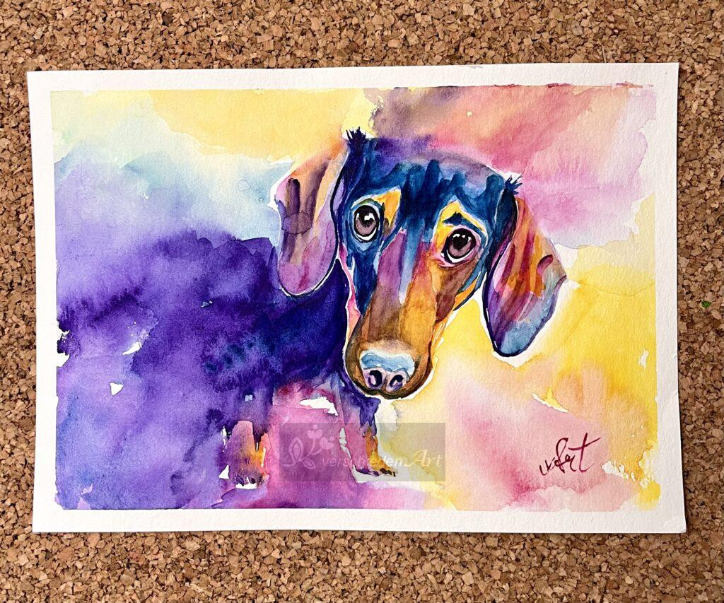 Ich bin nicht besonders selbstsicher ans Werk gegangen, weil ich noch nicht so viele Hunde gemalt habe. Ich glaube in den letzten Jahren nur einen weiteren Hund. Es ich nämlich schwieriger als gedacht, Hunde wie Hunde aussehen zu lassen und nicht versehentlich wie Katzen mit Schlappohren oder sowas in der Art.