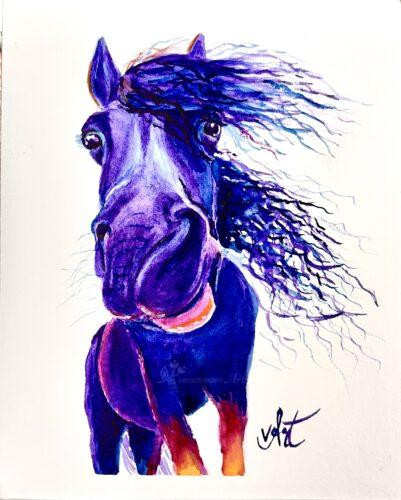 Bei den Kaltblutpferden gibt es ja auch ganz unterschiedliche Ausprägungen, aber definitiv sind sie für ihre prächtige Mähne und ihr glänzendes Fell berühmt. Ich habe mich für ein schwarzes Kaltblut entschieden und seine Fellfärbung etwas bunter gestaltet. Farbenrausch ist ja hier das Programm.