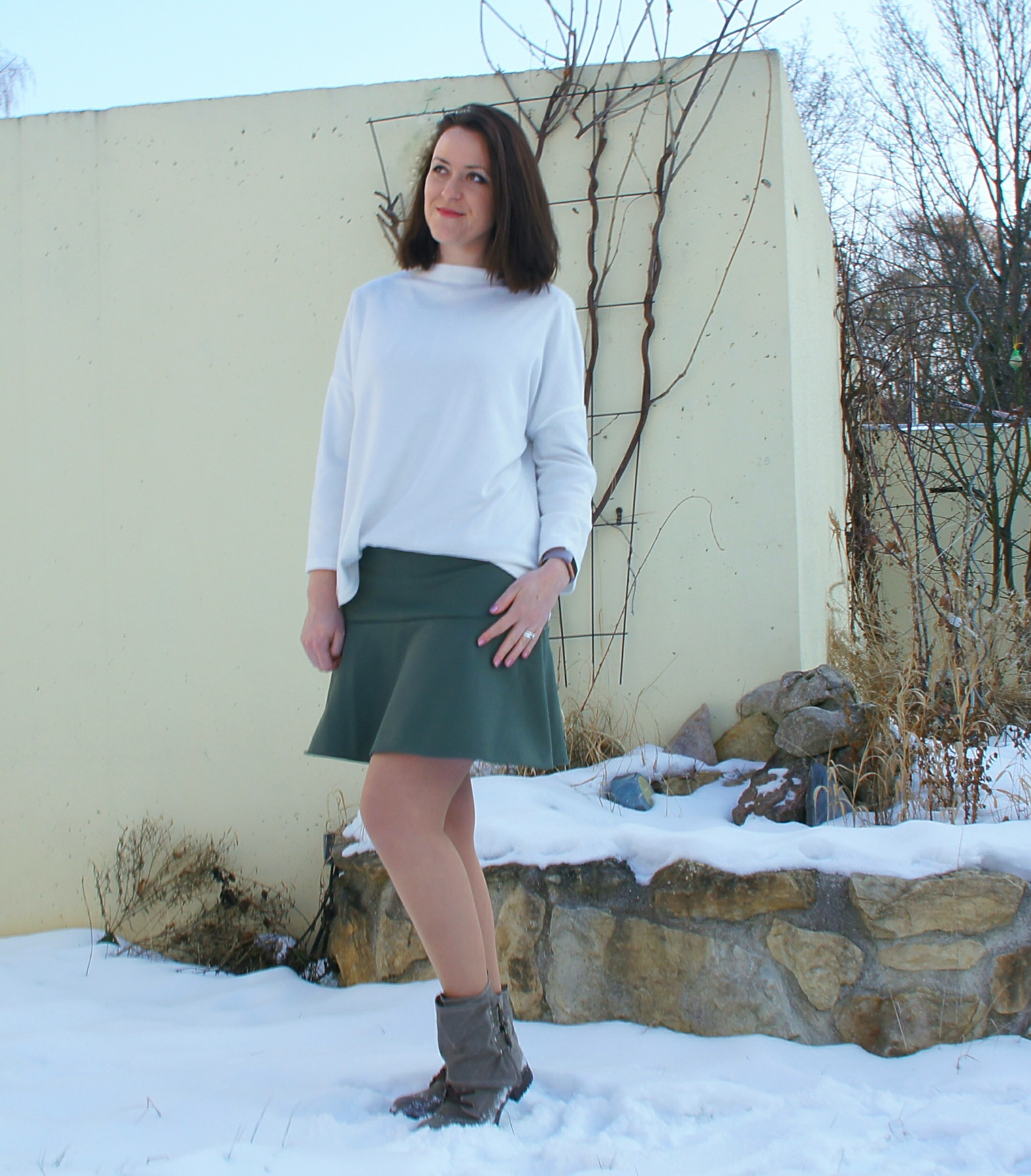 Letztes Jahr war ich auf einer Modeschau und ich war begeistert von einem schwarzen Neoprenrock. Und es hat über ein Jahr gedauert und den Aufruf von Selmin zur Farbe Grün bei 12ColorsOfHandmadeFashion im Januar bis mir die Idee mit dem Softshell-Rock kam. Manchmal dauert’s eben länger bis es “klick” macht. Dann ist mir das ideale Schnittmuster über den Weg gelaufen und von da an ging es flott.